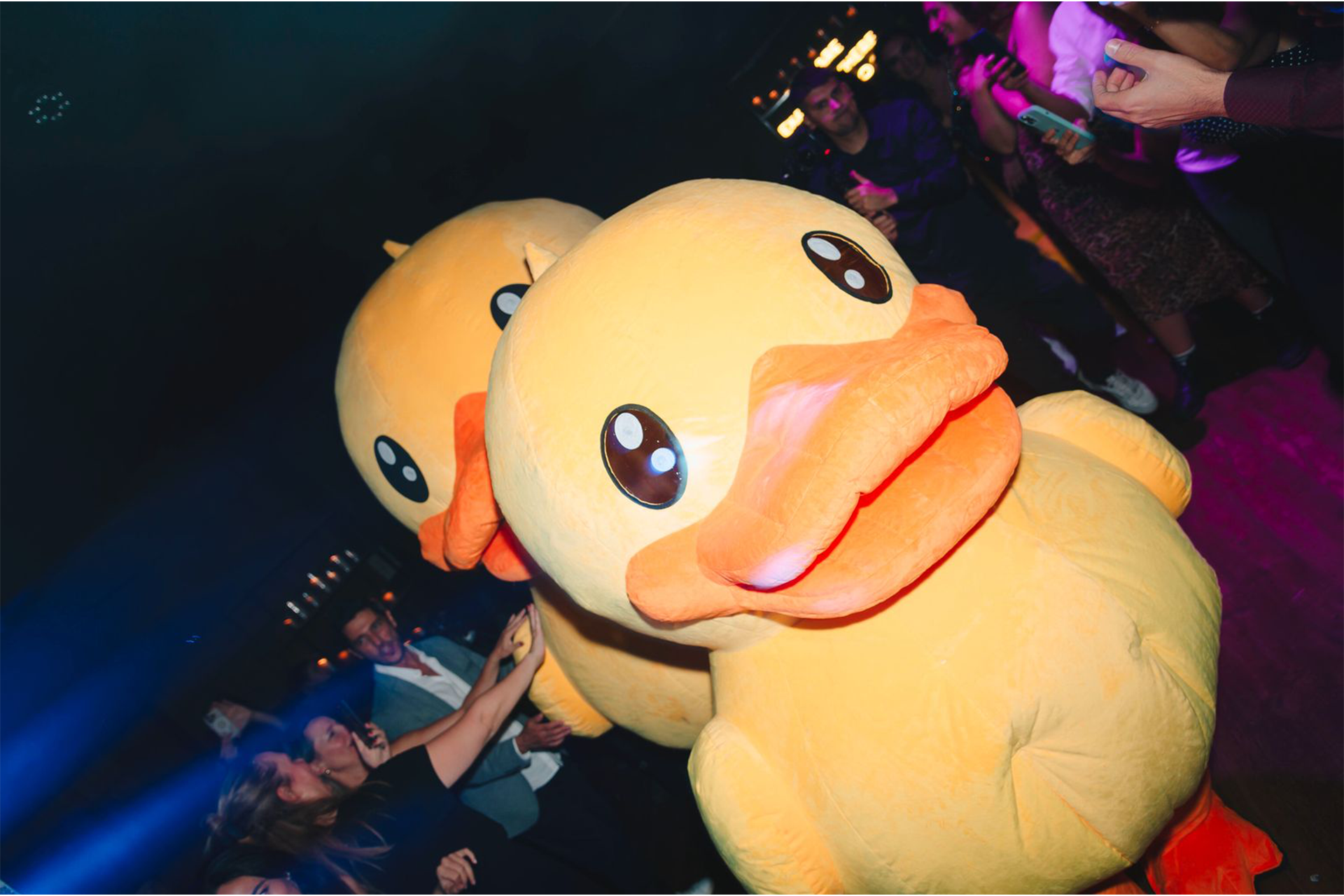 Nuestros performers ingresan caracterizados como policías para activar la fiesta al máximo. Con carteles divertidos para fotos y accesorios para los invitados (como gorros de prisionero, esposas y gafas), esta tanda garantiza risas, fotos y mucha energía. Dos patos gigantes entran en escena para causar un impacto visual inédito. ¡Pura diversión y un toque inesperado que todos van a recordar! Elementos que sorprenden:¿Qué incluye?