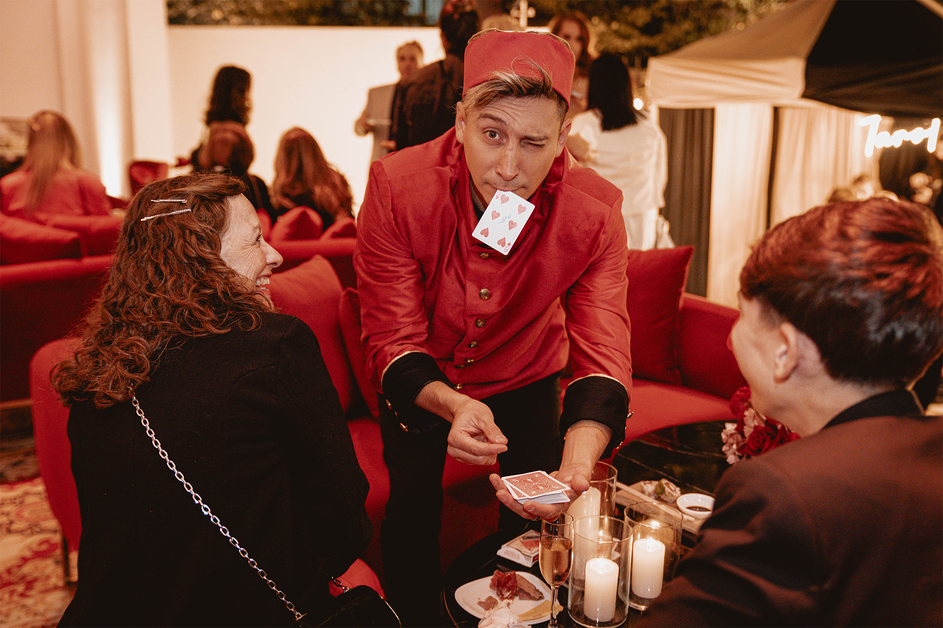 Con una ambientación mágica, invita a los invitados a acercarse para una lectura de cartas personalizada, con mensajes que combinan intuición, simbolismo y diversión.