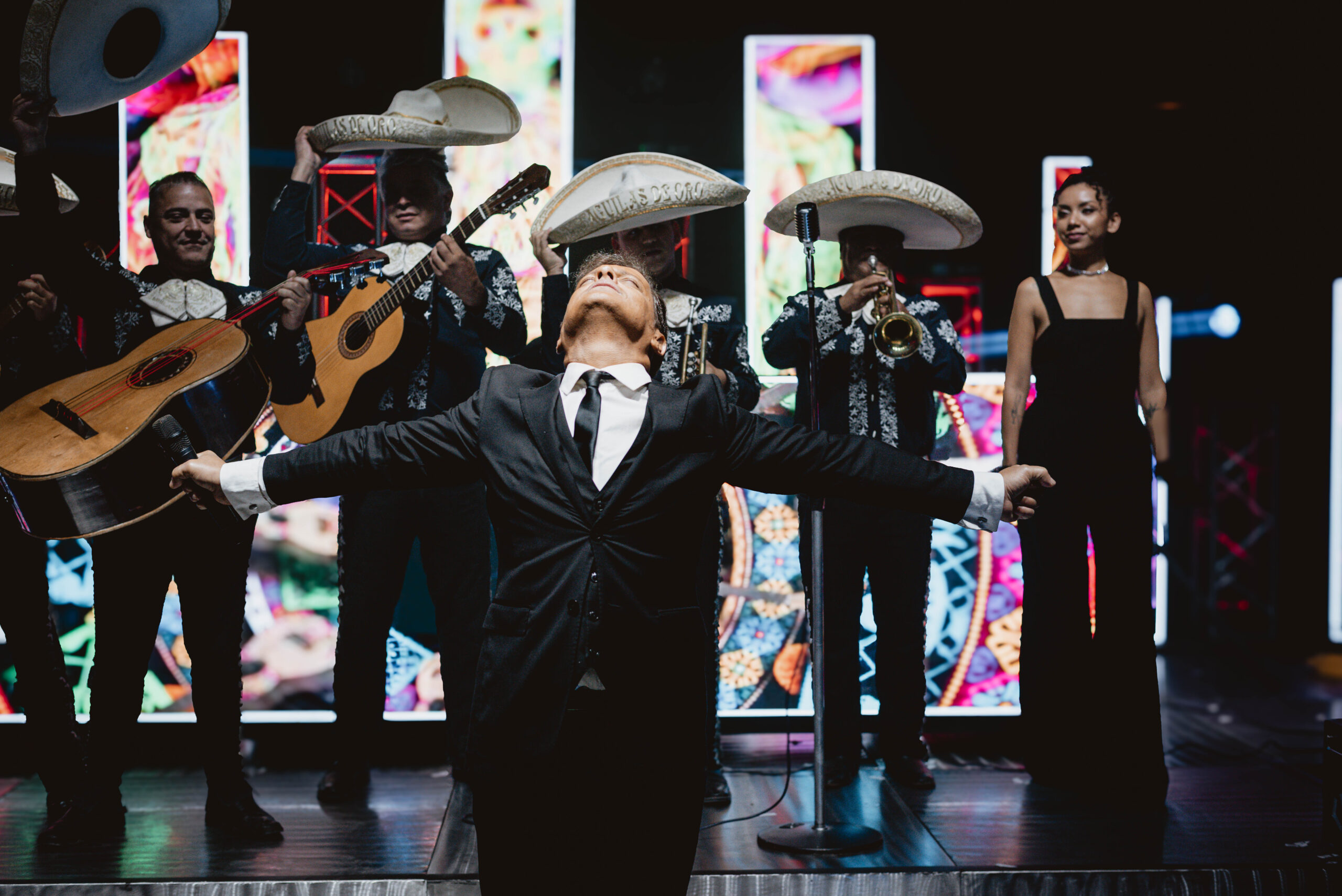 Acompañado por dos coristas en vivo y un set de mariachis para los clásicos mexicanos, este número garantiza emoción, glamour y mucha diversión para todos los invitados. Incluye efectos especiales: C02 y chispas frías.